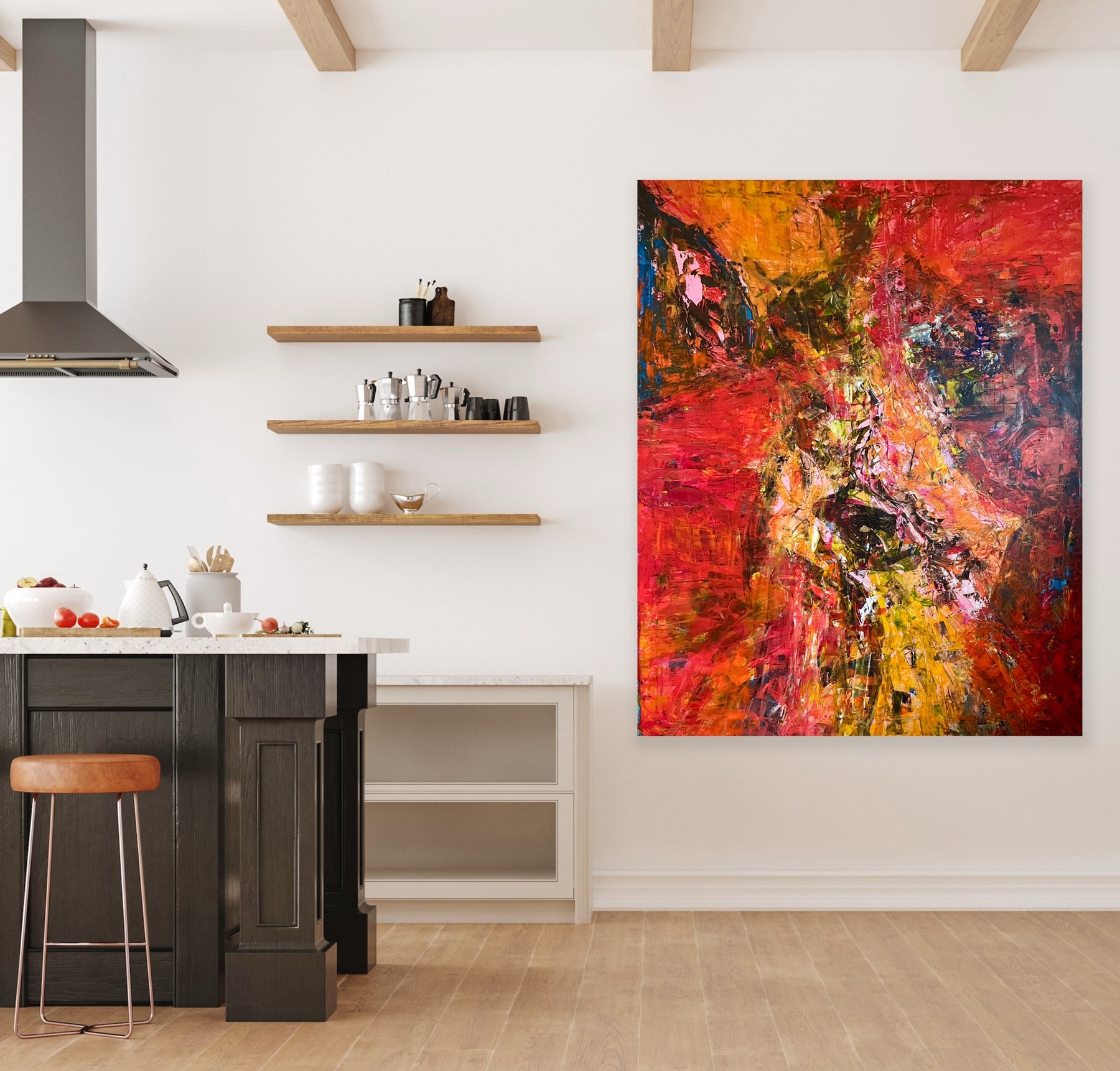 Jeg har flere malerier klar i atelieret, som kan lånes med hjem, og jeg maler også på bestilling, hvis du har specifikke ønsker til størrelse og stil.