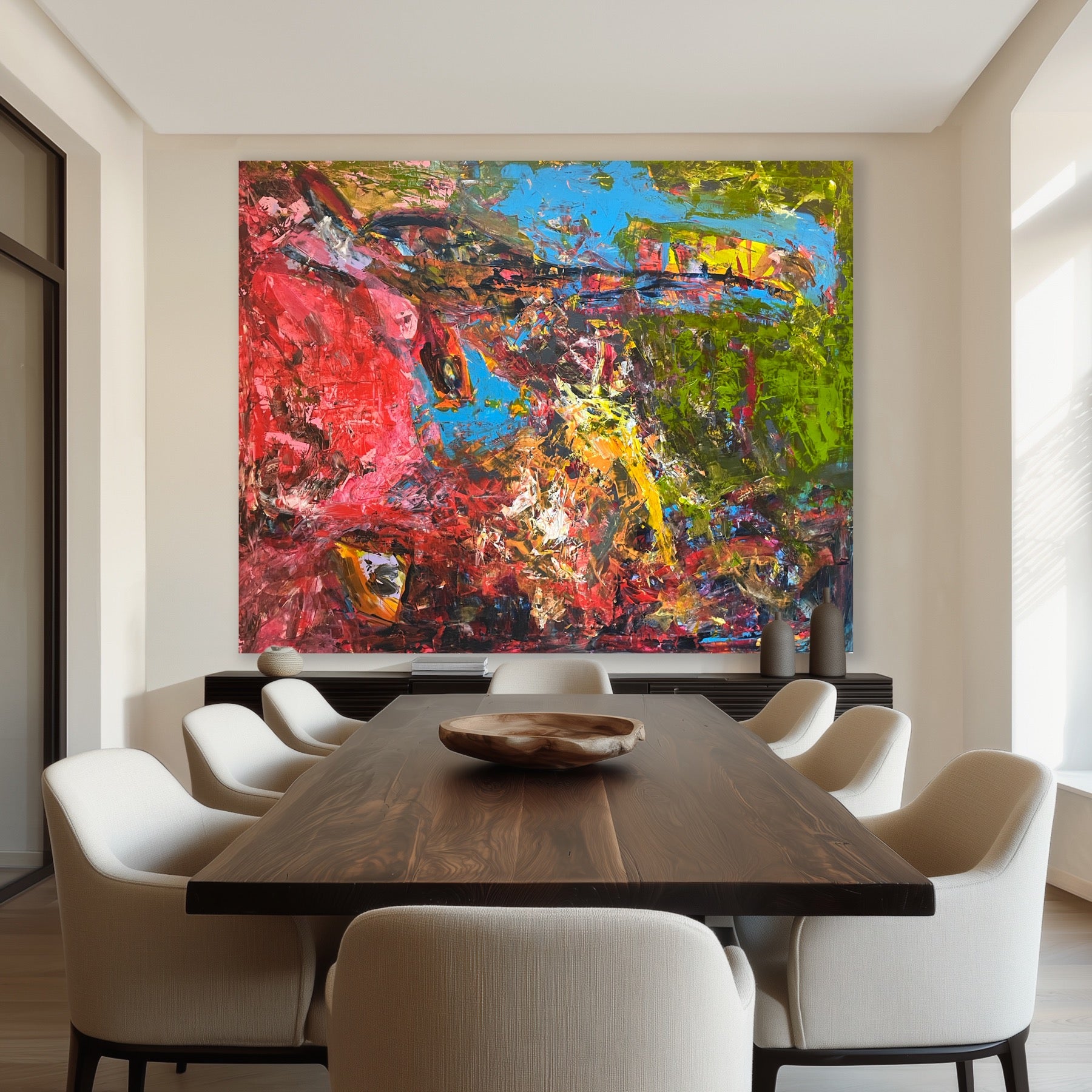 Jeg har flere malerier klar i atelieret, som kan lånes med hjem, og jeg maler også på bestilling, hvis du har specifikke ønsker til størrelse og stil.