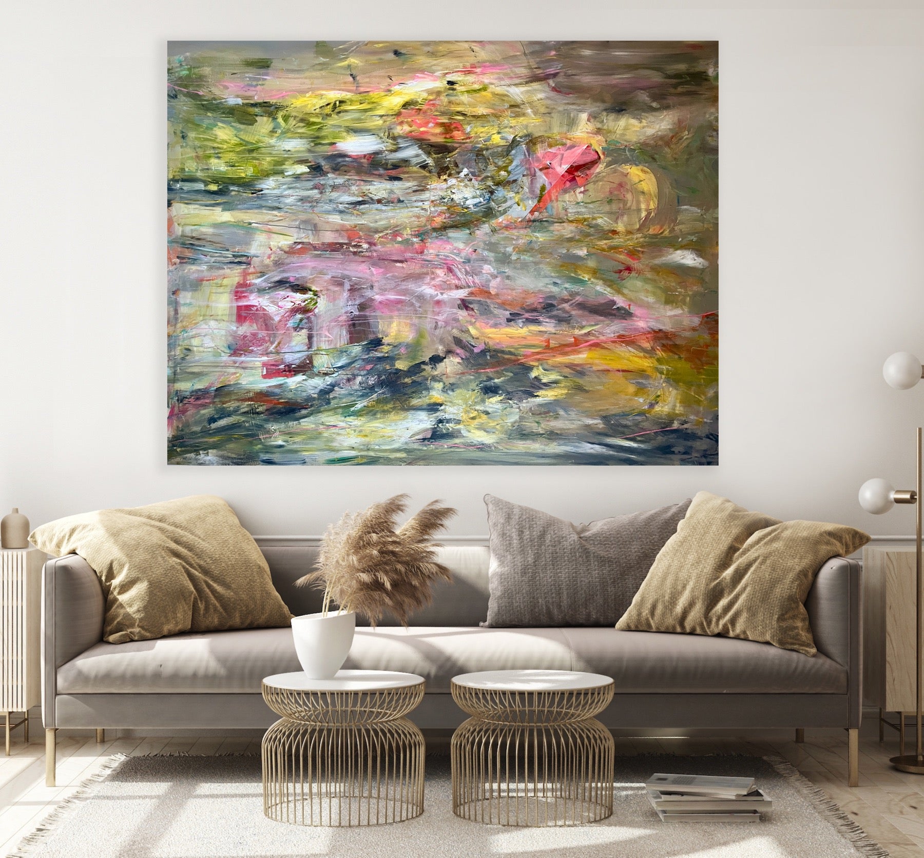Jeg har flere malerier klar i atelieret, som kan lånes med hjem, og jeg maler også på bestilling, hvis du har specifikke ønsker til størrelse og stil.