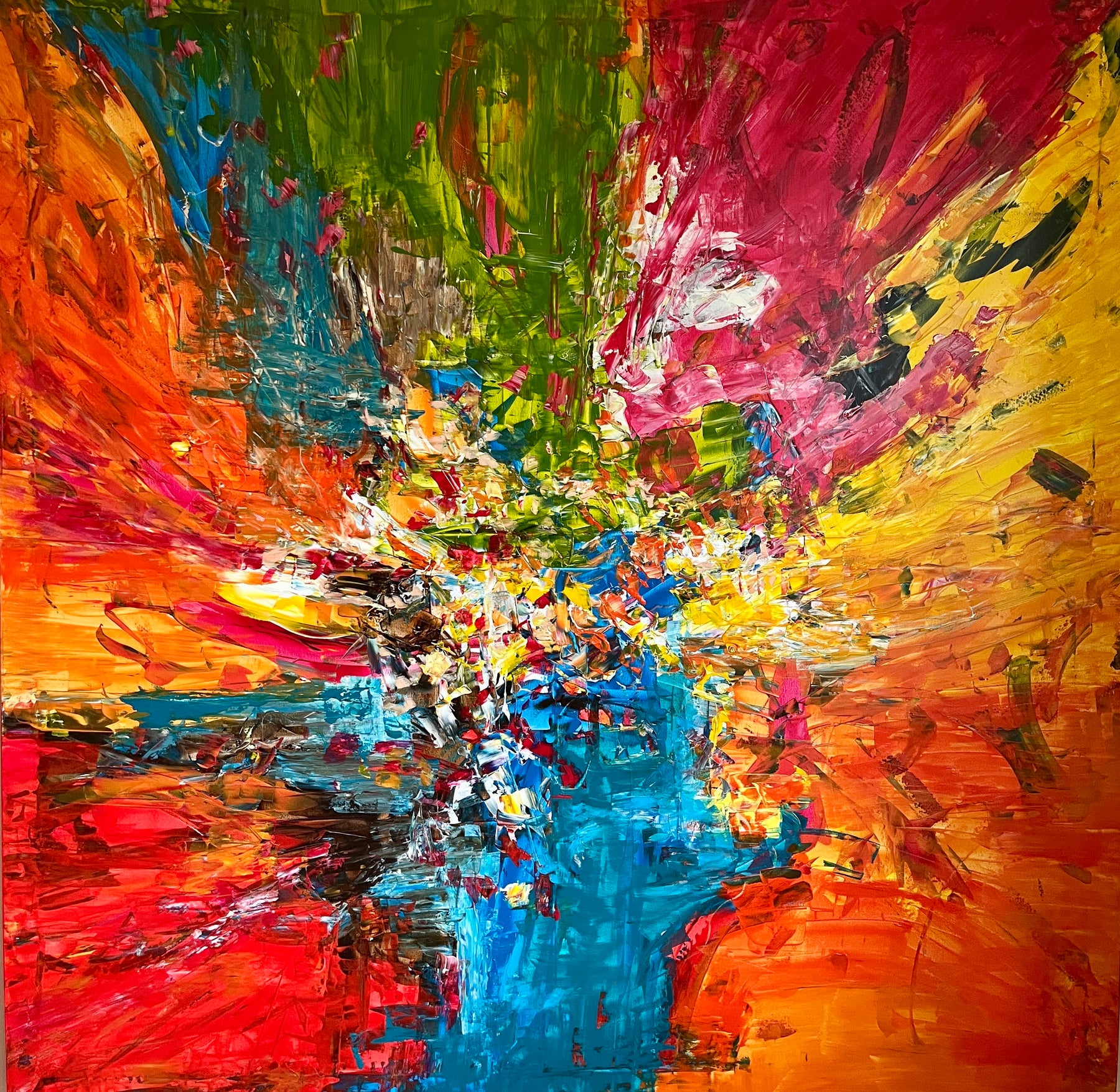 Farver - glæde - dynamik er kendetegnende for Lones malerier. Jeg vil følge hende og sikkert købe flere malerier, da jeg tror på en fremtid med dem og hende som kunstner.